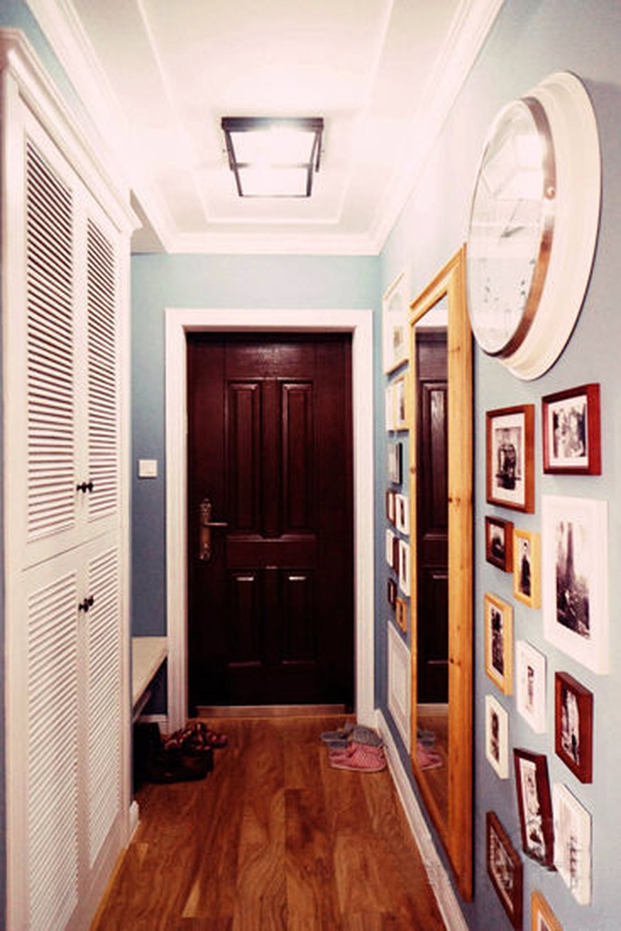 玄关面积小,避免地面空间的占用就显得尤为重要,而作为家中一个重要的储物场所,合理的利用起墙面空间来进行收纳也是玄关扩容的一个重要条件,墙壁的内嵌设计和挂钩的使用能够有效地让杂物“飘起来”,从而给地面打造出清洁感。