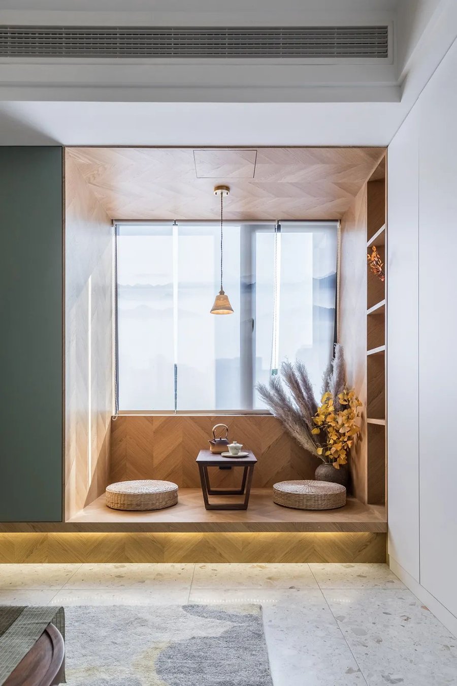 没有经过精细加工,最大程度地保留原木的特殊纹理、柔和细密的质感以及朴素的色彩,创造出带有生命力的家居环境。