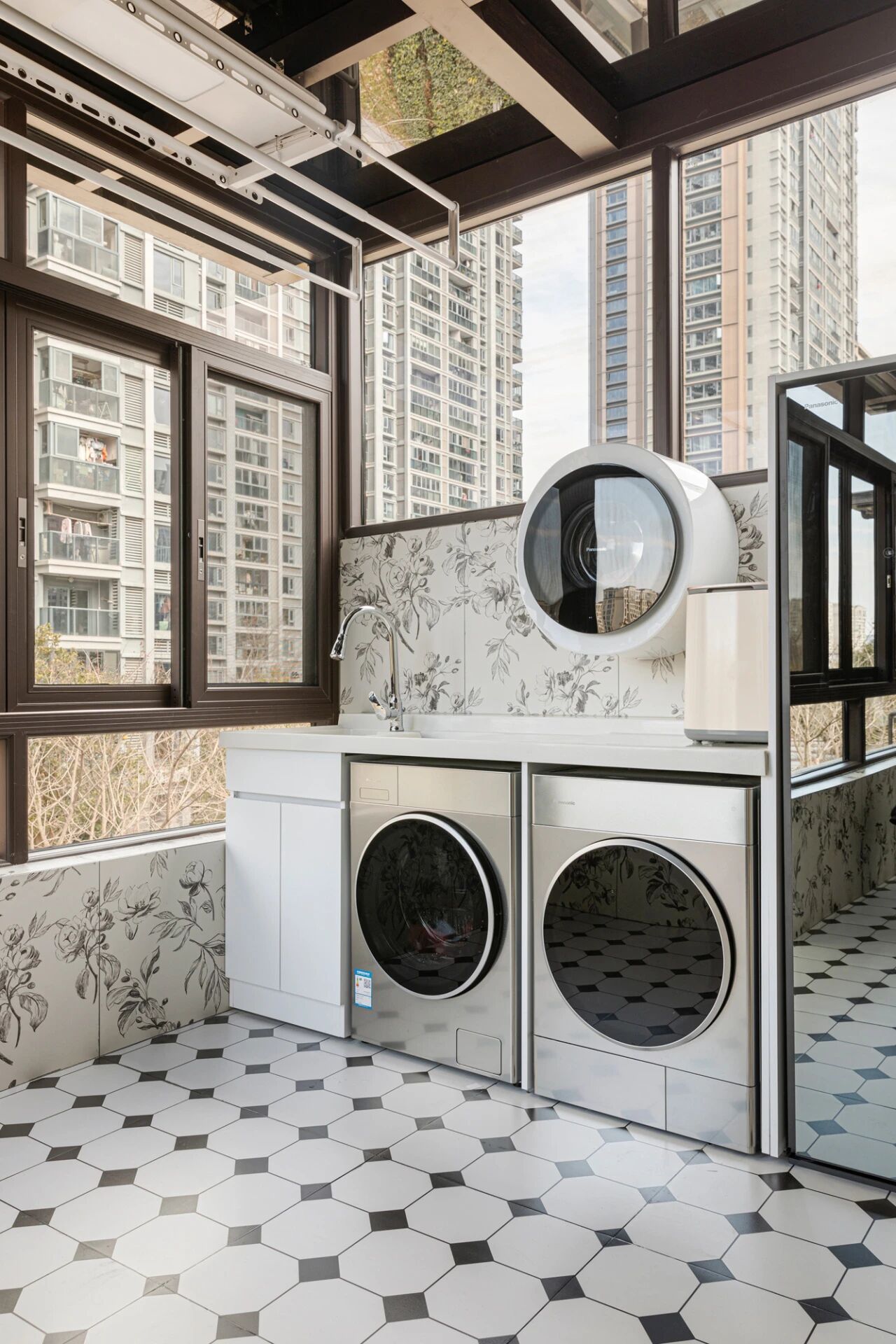 叠放式洗烘套装需提前加固墙体承重,并预埋50mm排水管。